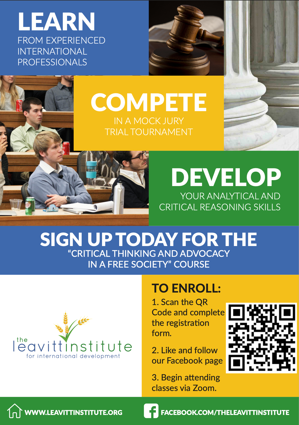 La sfârșitul anului universitar, Institutul Leavitt selectează în mod competitiv studenții și le oferă posibilitatea de a finaliza un stagiu de vară de trei săptămâni într-un format online sau offline.