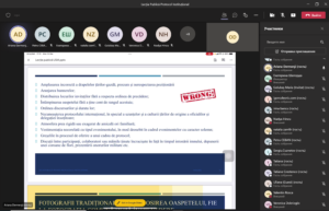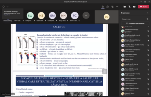 Conținutul și forma prezentării au provocat discuții interesante pe final de lecție prin care atât autoarea Ghidului practic, cât și cadrele didactice, și studenții s-au expus asupra evenimentelor curente din viața internațională în care poate fi reliefată respectarea / nerespectarea regulilor de protocol.