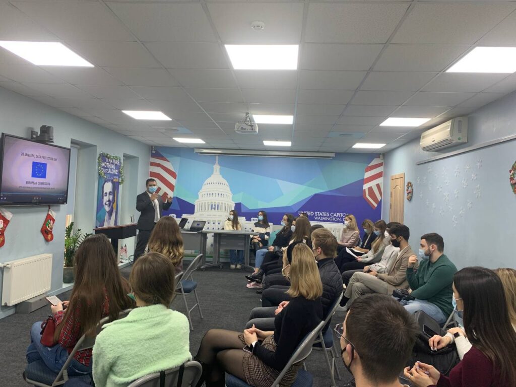 Invitatul special, dl Sergiu Bozianu, Președintele Asociației pentru Protecția Datelor cu Caracter Personal, a fost cel care a pus în discuție, împreună cu studenții Filierei Anglofone, subiecte importante ce vizează protecția și reglementarea juridică la nivel național și internațional a vieții private, precum și riscurilor cărora ne expunem, distribuind informațiile personale în mediul public. Dl Sergiu Bozianu a menționat că motivul principal care ne determină să distribuim datele personale în mediul public este, de fapt, goana după confortul nostru zilnic, întrucât, la momentul actual, pentru a beneficia de serviciile oferite în spațiul public (online), suntem ”obligați” de a oferi (”vinde”) datele noastre personale. Perioada pandemică, cu siguranță, a devenit pentru mulți un motiv de îngrijorare în ceea ce privește protecția datelor cu caracter personal. Aceasta este generația ”online-ului”, iar pentru a beneficia de serviciile oferite de rețelele de socializare, de aplicațiile pentru comunicare și de portalurile media, suntem nevoiți să transmitem informații private, însă nefiind asigurați de stocarea lor secretă.