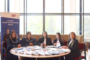 Timp de două zile, studenții de la Filiera francofonă a Facultății de Drept, împreună cu profesorii Ilona Josanu și Artiom Eni, au prezentat vizitatorilor forumului programele de studii la specialitate în limba franceză; au organizat ateliere disciplinare cu simularea atribuțiilor funcționale ale judecătorului, procurorului si avocatului, intrigând astfel tânărul public prin diversitatea și specificul jurisprudenței. Mai mult, aceștia au avut frumoasa ocazie de a îmbrăca roba de judecător și cea de avocat pentru a trăi momente inedite, fiind antrenați în respectivul rol.