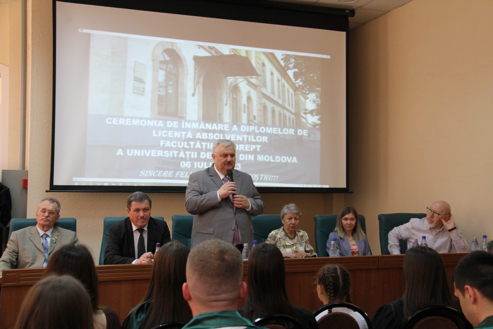 Decanul Facultății de Drept, dr.hab., prof.univ., Serghei Brînza a felicitat absolvenții cu acest frumos prilej – ceremonia de înmânare a diplomelor, reiterând importanța aplicării practice a cunoștințelor teoretice obținute la drept, prin valorificarea oportunităților zilnice întru realizarea unui vis frumos la finalul căruia fiecare să fie mândru și să-ți poată aplauda performanțele. Or, în domeniul dreptului avem nevoie astăzi de specialiști buni, care să livreze societății exact ceea ce așteaptă – dreptatea și supremația legii.