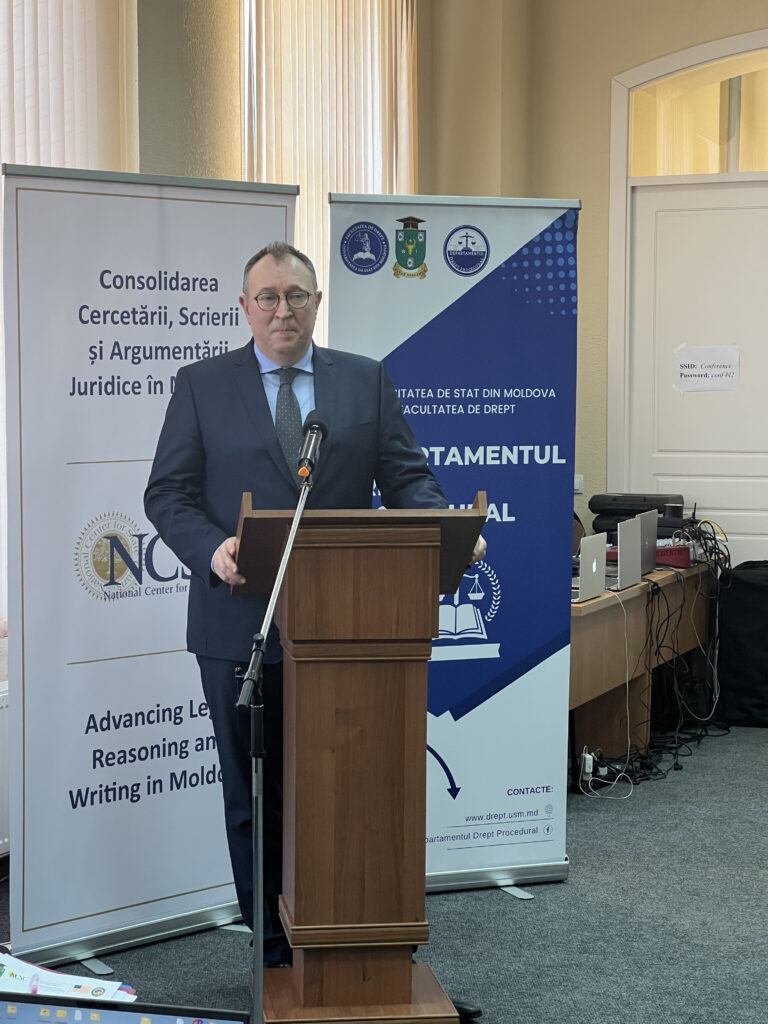 Sesiunea privind „Implementarea cursului de cercetare, scriere și argumentare juridică la facultățile de drept din Republica Moldova” a fost marcată de discursuri ale reprezentanților managementului educațional al USM.